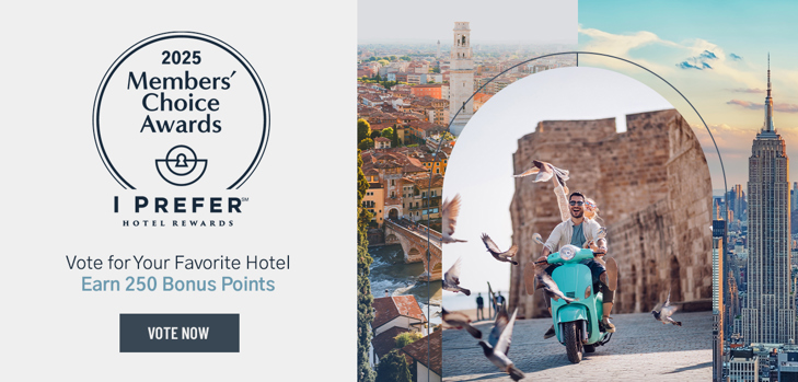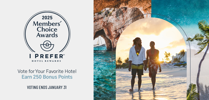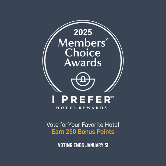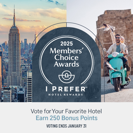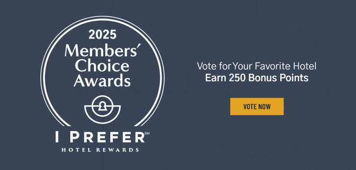 The I Prefer Members' Choice Awards is an annual voting campaign where our travelers vote on their favorite hotels, participating in I Prefer Hotel Rewards.