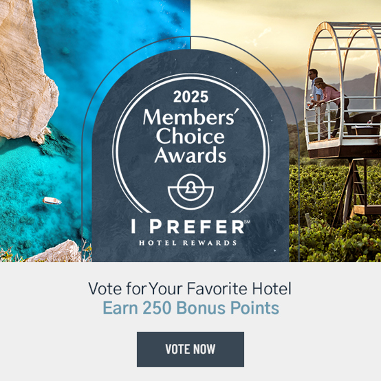 The I Prefer Members' Choice Awards is an annual voting campaign where our travelers vote on their favorite hotels, participating in I Prefer Hotel Rewards.